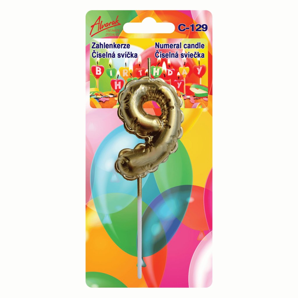 Zlatá svíčka na dort, číslice 9