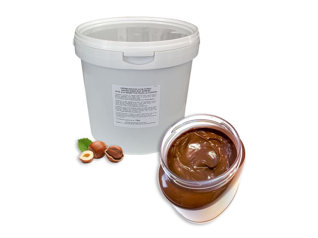 Nugátový krém Gianduia (lískový oříšek s kakaem) na pečení, vhodný jako náplň do mřížkových koláčů, croissantů, a briošek. Použití jak za studena tak i za tepla.