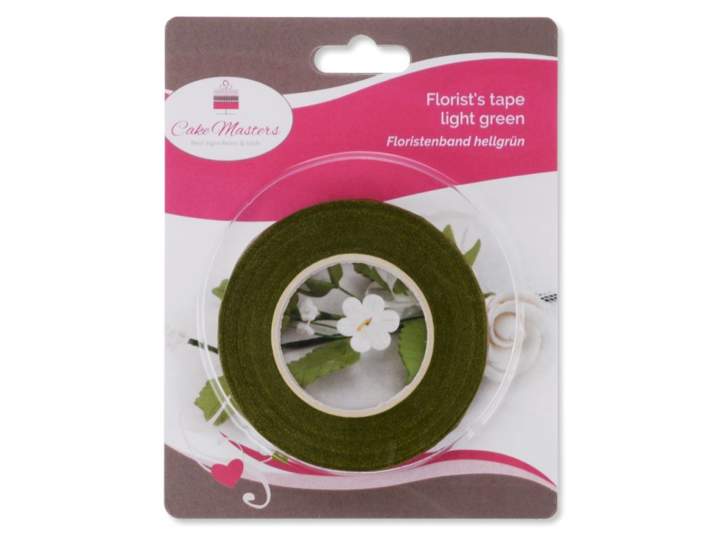 Profesionální světle zelená květinová stuha pro výrobu vlastních cukrových květin. Pomocí květinové pásky jsou jednotlivé květinové drátky květin svázány dohromady a tvoří květinu.