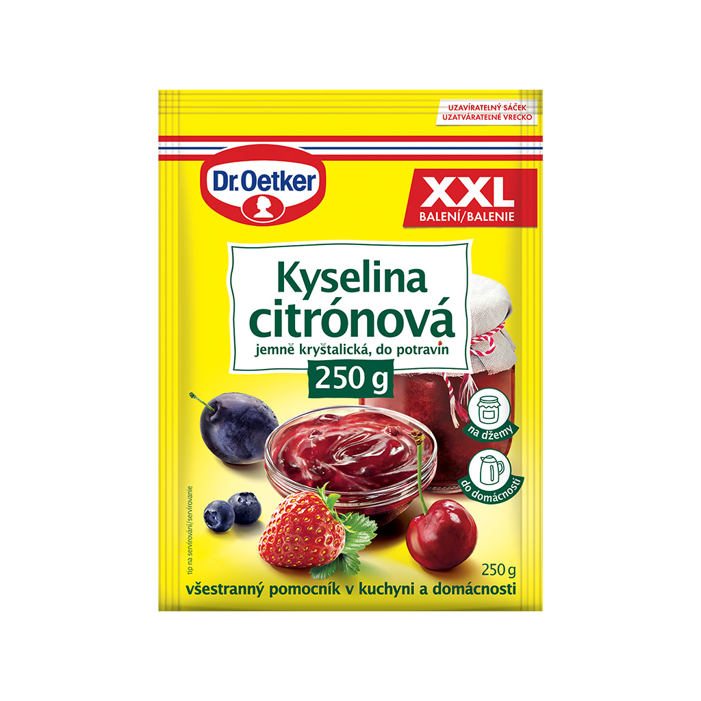 Složení produktu Dr. Oetker Kyselina citrónová XXL 250 g: