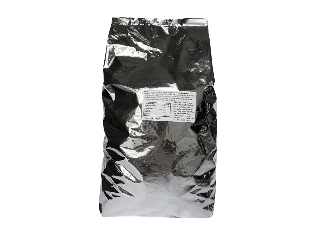 - Výživové hodnoty na 100g: Energetická hodnota 469kcal, Bílkoviny 10g, Tuky 20g, Mastné kyseliny nasycené 9,6g, Sacharidy 60g, Cukry 3,5g, Sůl 2,3g
