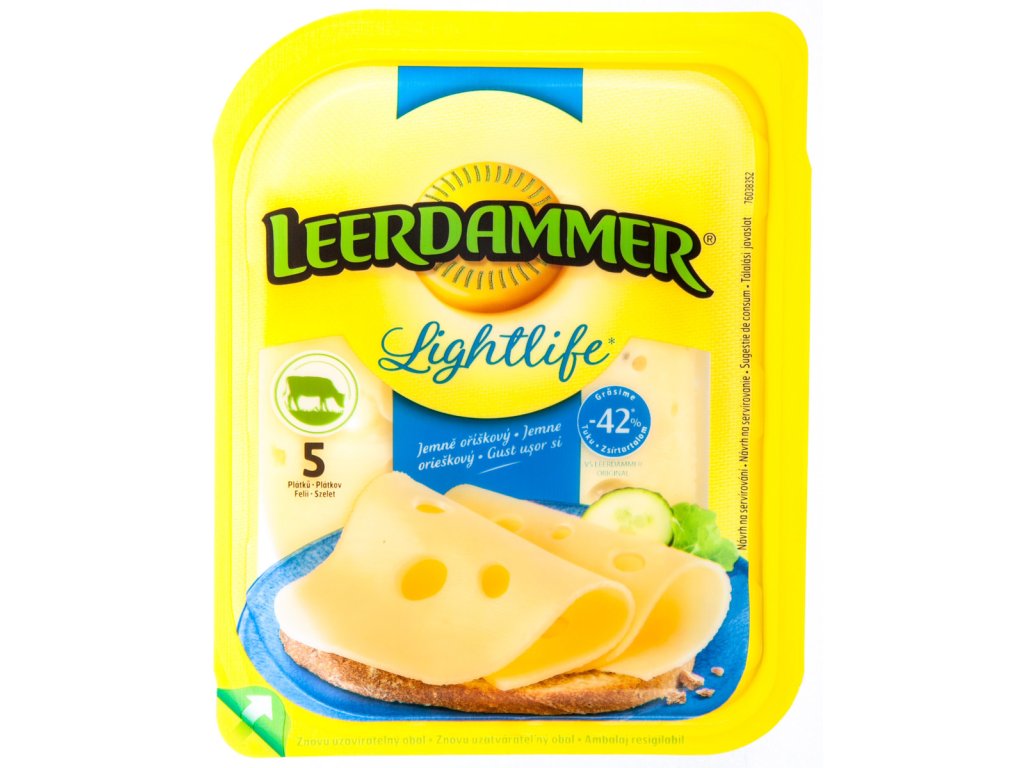 - polotvrdý zrající polotučný sýr plátkový, nižší tuk o 42% v porovnání s Leerdammer Original