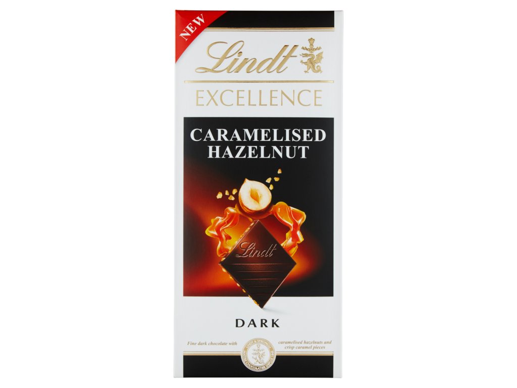 Lindt Excellence Dark Čokoláda hořká s lískovými ořechy a kousky karamelu 100 g