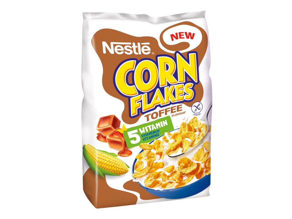 - Křupavé kukuřičné lupínky a příchutí toffee, s vitamíny. Bez lepku.
