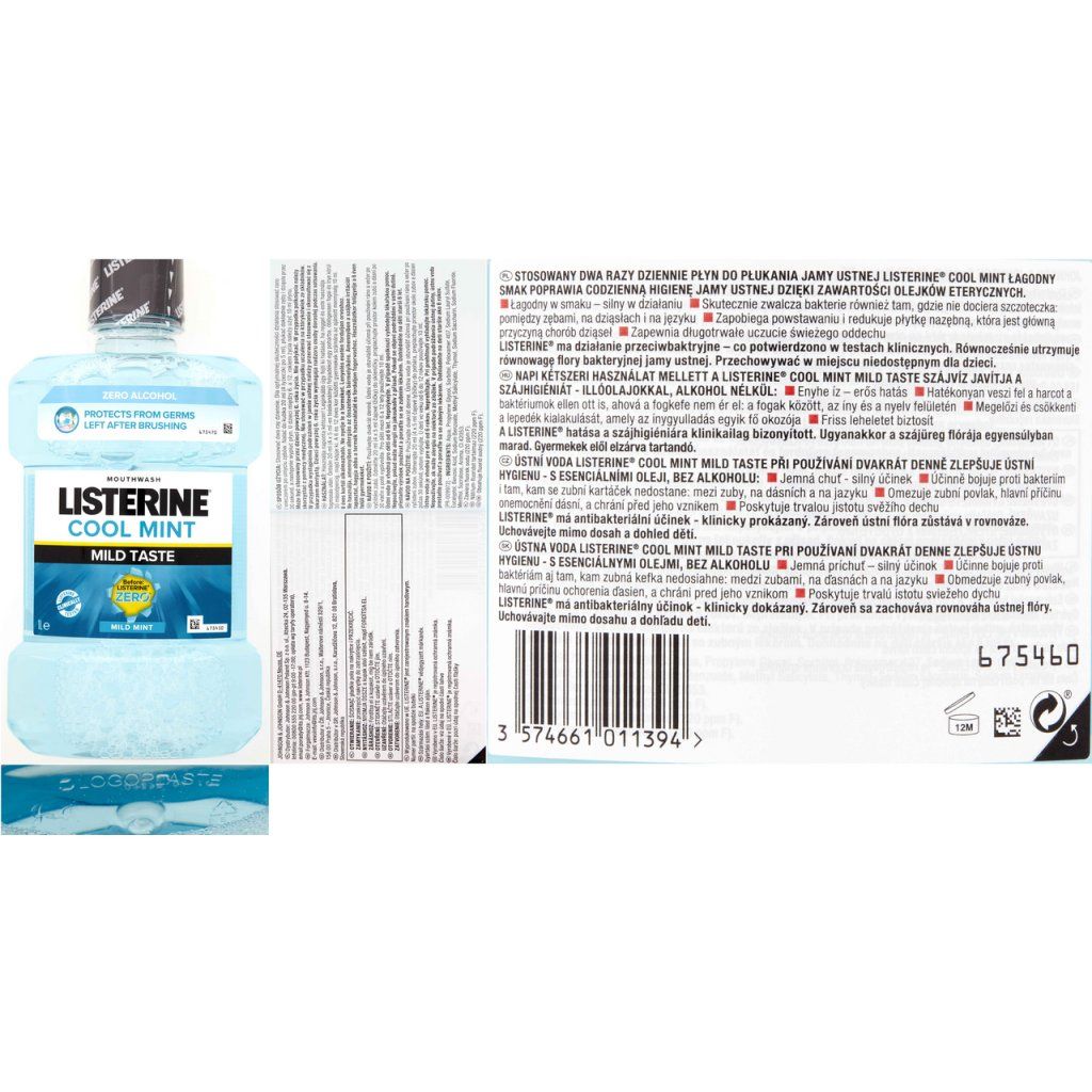 LISTERINE Zero Cool Mint Mild Taste ústní voda 1 l
