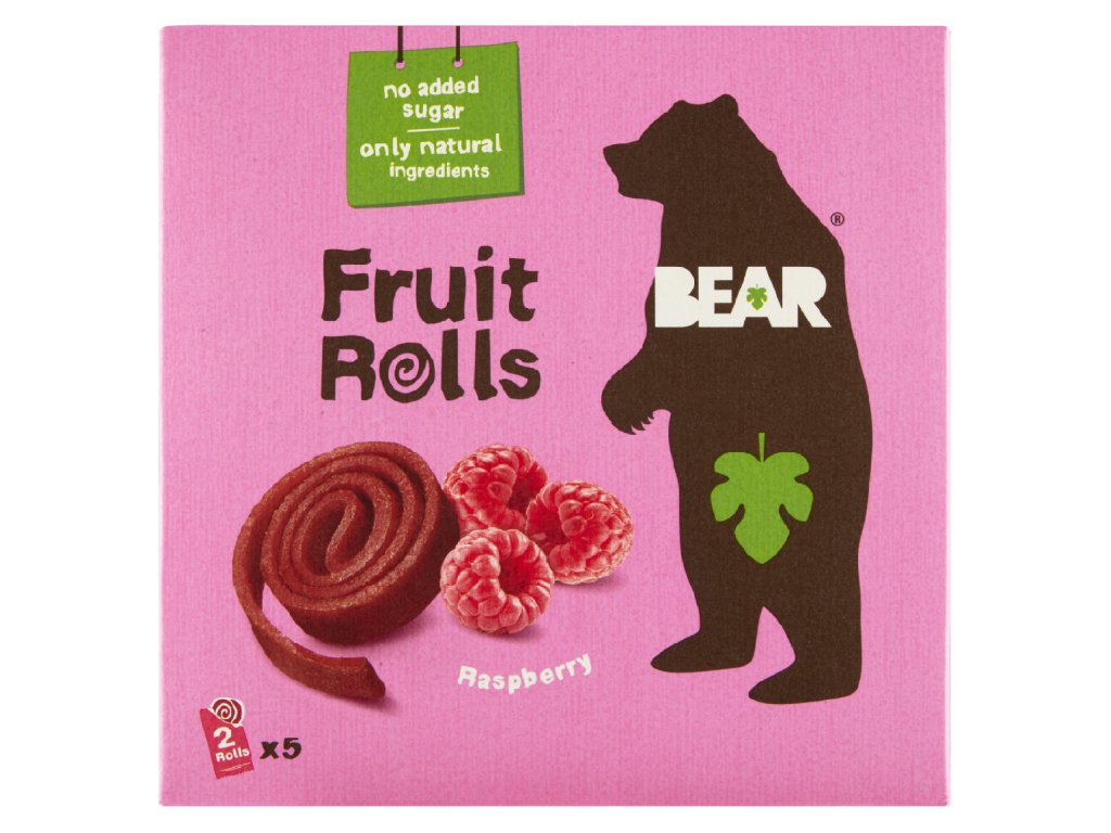 - YOYO BEAR Jemně sušená ovocná dřeň s příchutí maliny, rolované plátky.