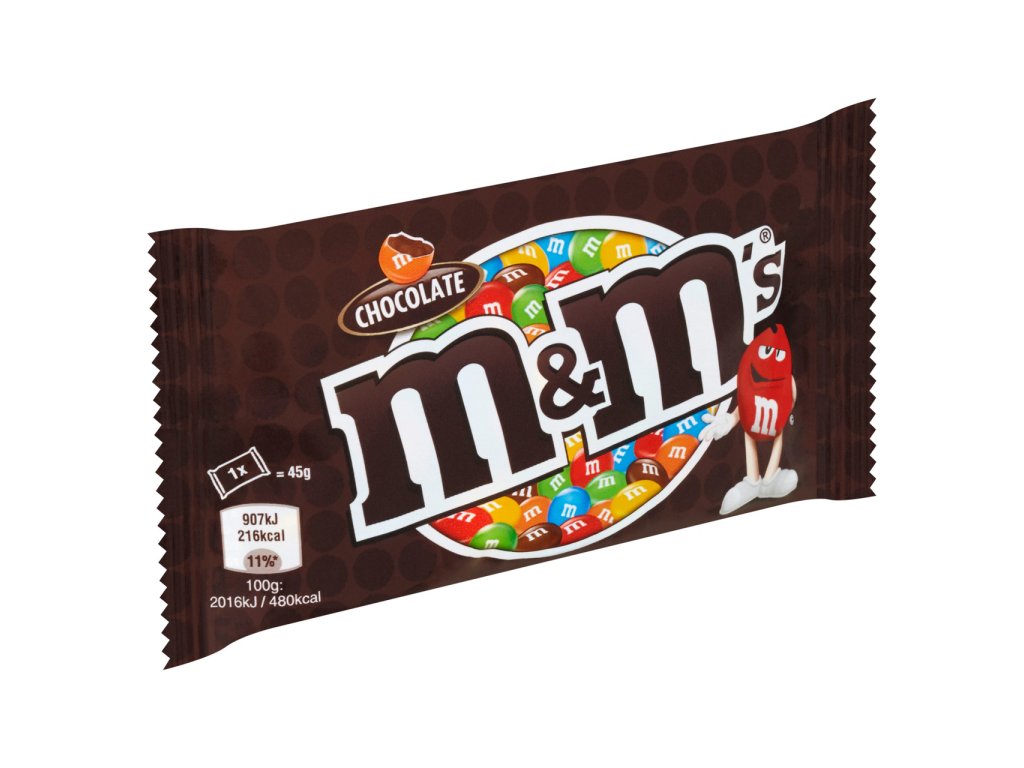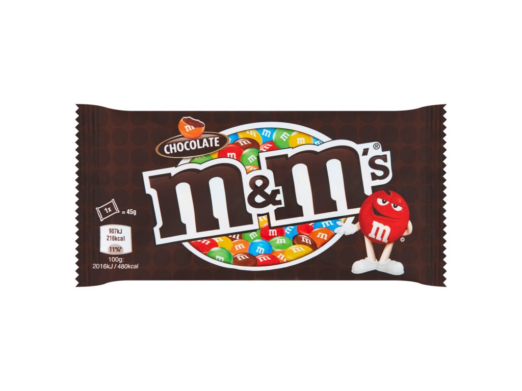 - M&M's čokoládové 45g ČOKOLÁDOVÉ DRAŽÉ - MLÉČNÁ ČOKOLÁDA (66%) V KŘUPAVÉ CUKROVÉ SKOŘÁPCE