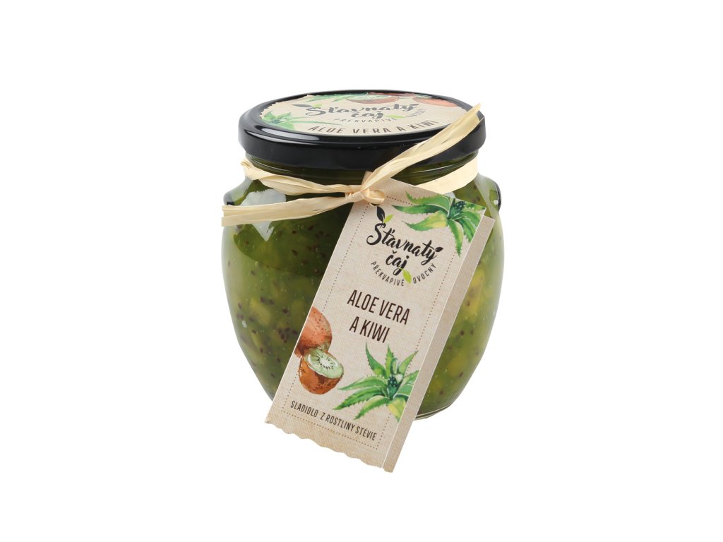 - Aloe vera 43%, kiwi 39%, cukr, kyseliny: kyselina jablečná, kyselina citrónová, konzervant: sorban draselný, barvivo: chlorofyl, betakaroten, antioxidant: askorban sodný, disičitan sodný, sladidlo: steviol-glykosid, zahušťovadla: xanthan, guma guar, alginát sodný, aroma.