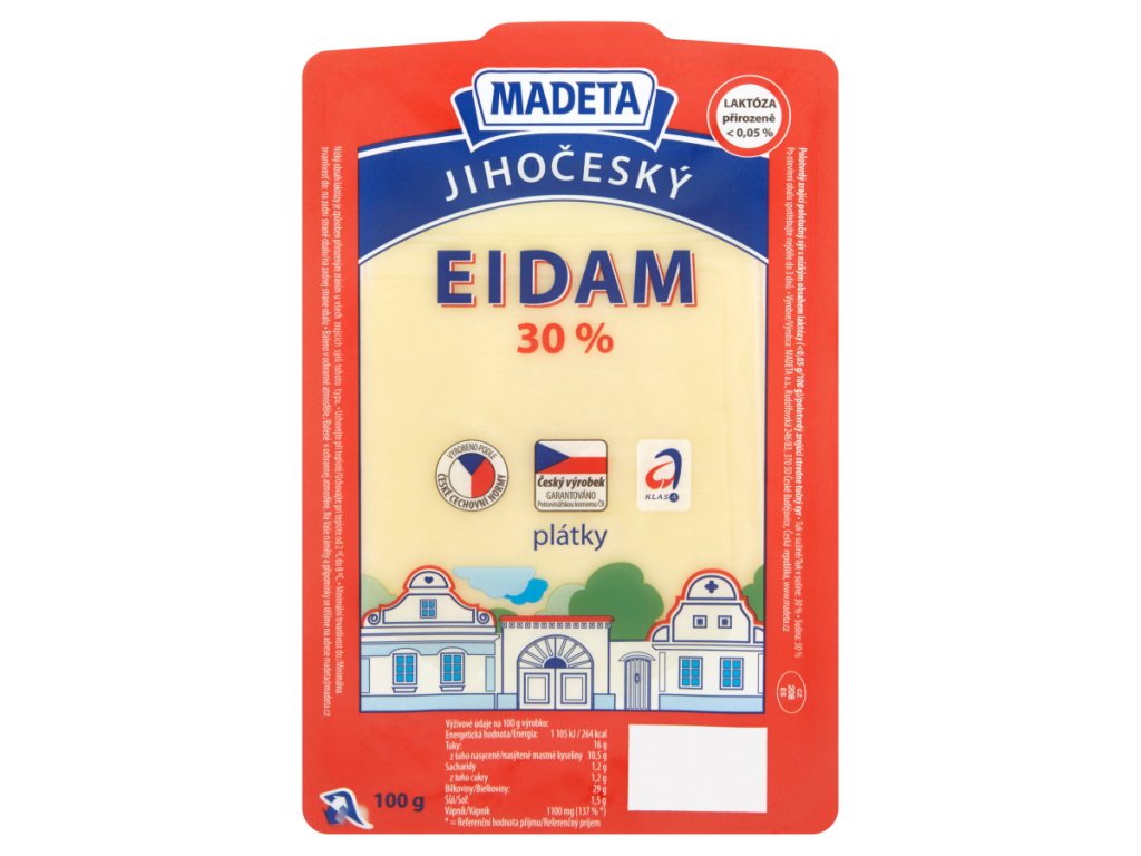NUTRIČNÍ HODNOTY produktu - MADETA Jihočeský Eidam sýr 30 % plátky chlaz. 100 g / 100g výrobku