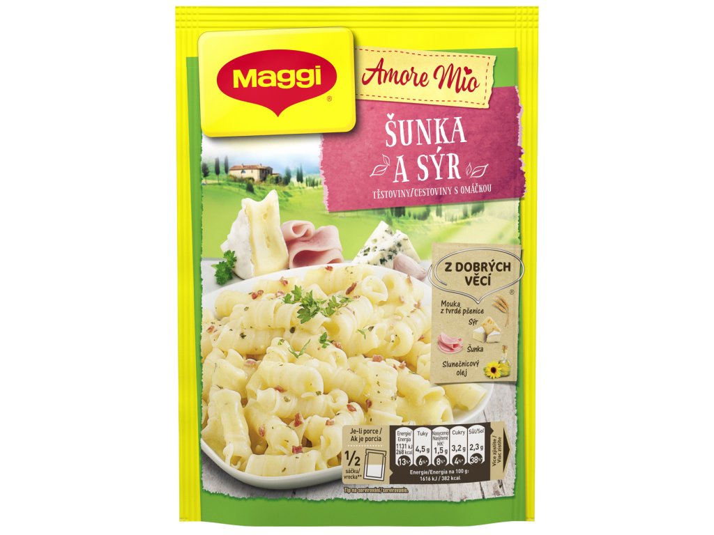 Nakupovat potraviny, drogerii a další potřeby pro domácnost online se vyplatí. Náš online supermarket Terunka.cz, toho má v kategorii: mnohem více. Prohlédněte si celou naší nabídku a ušetřete svůj čas i peníze.Maggi Amore Mio Těstoviny se šunkou a sýrem 140 g za skvělou cenu, máme skladem.