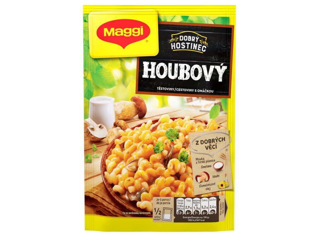 NUTRIČNÍ HODNOTY produktu - Maggi Dobrý Hostinec Houbový Těstoviny s omáčkou 144 g / 100g výrobku
