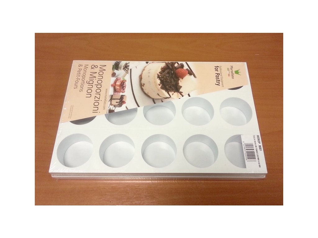 Forma na nepečené dezerty.Balení obsahuje tác a 3 formy po 5 otvorech. Velikost formy: 26 x 40 cmVelikost kruhu: 6,5 cmHloubka: 4 cmMateriál: plastDoplňkové parametry