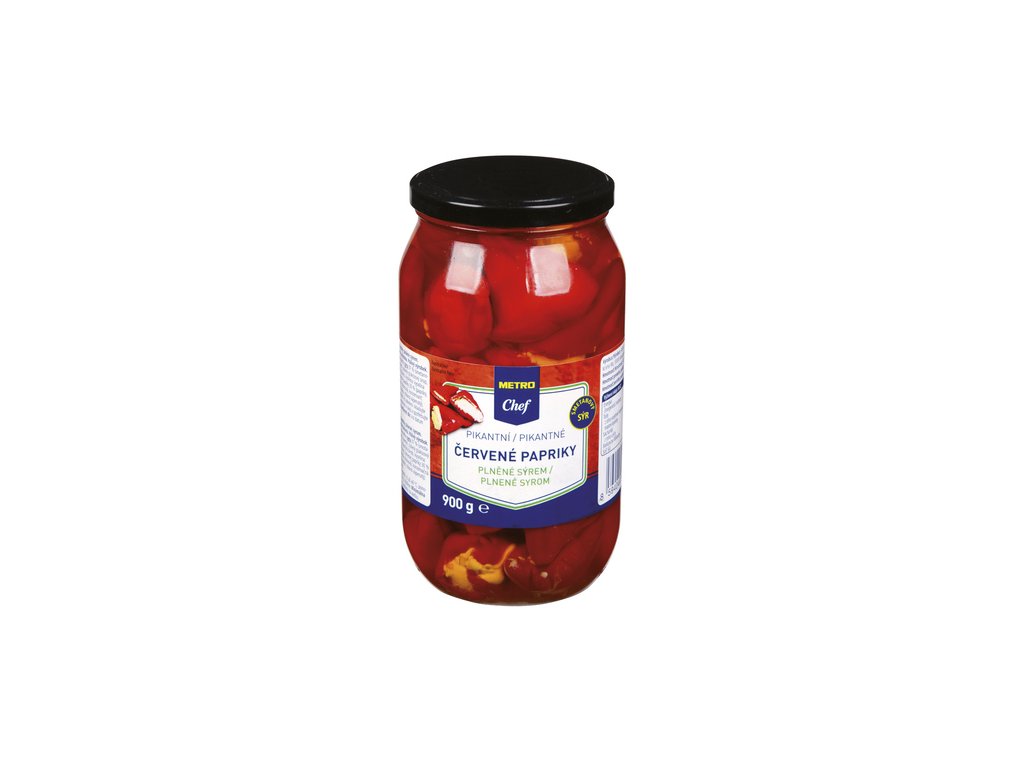 - Pikantní červené papriky plněné sýrem. Zpracovaná pasterovaná zelenina. Pálivý výrobek.