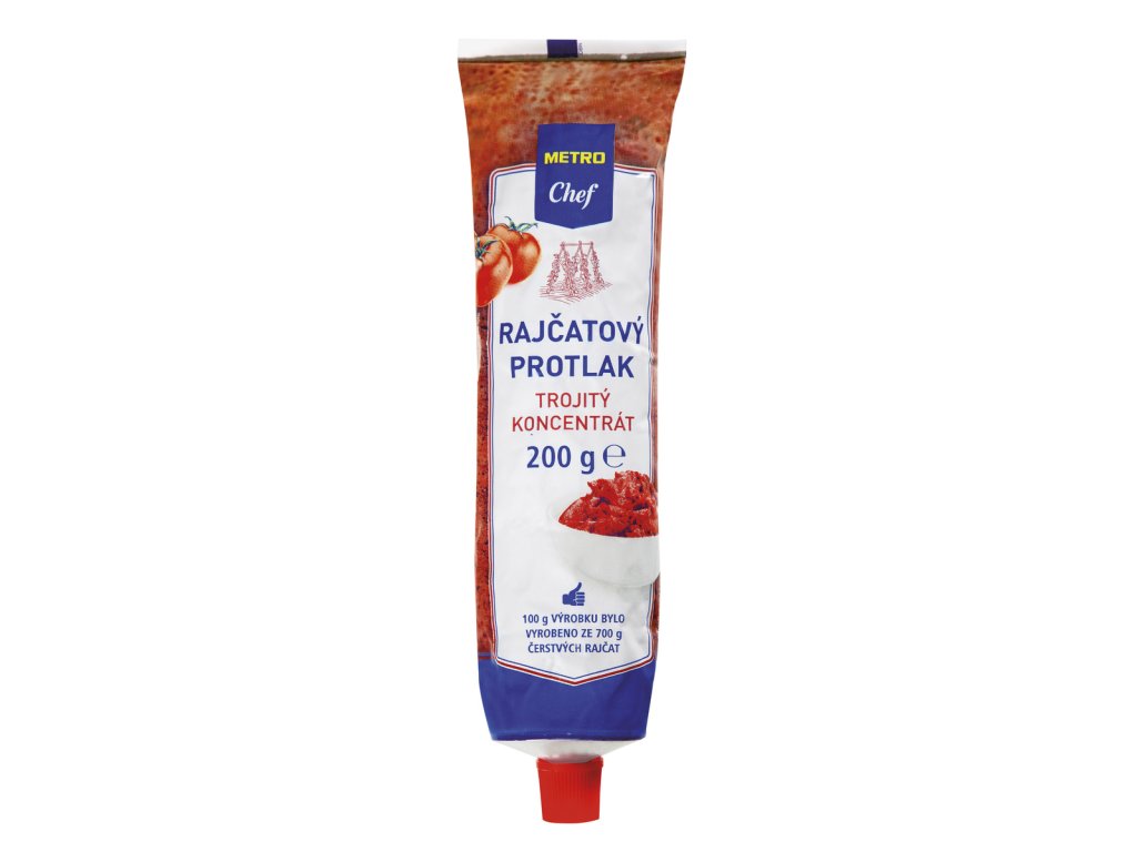 - Rajčatový protlak, trojitý koncentrát. Konzervovaná pasterovaná zelenina.