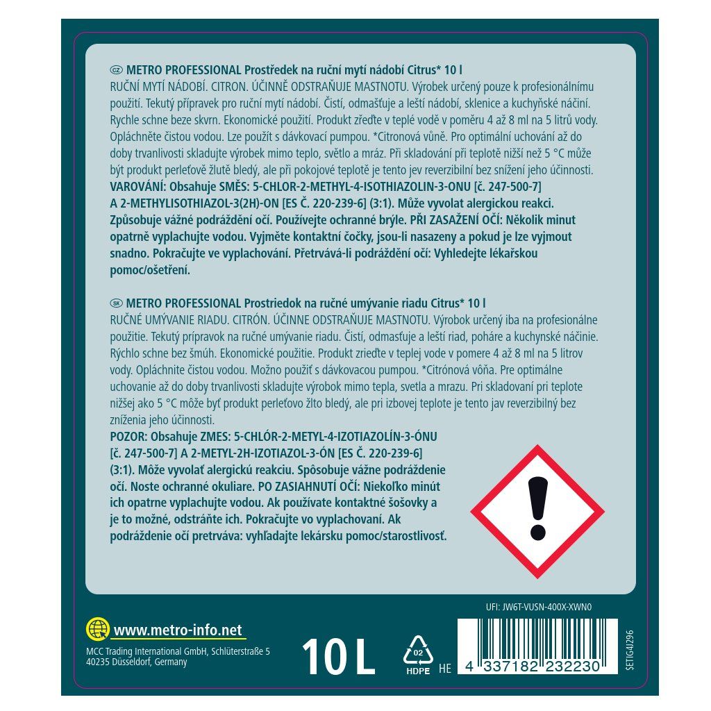 METRO PROFESSIONAL Gel na mytí nádobí Citrus 10 l