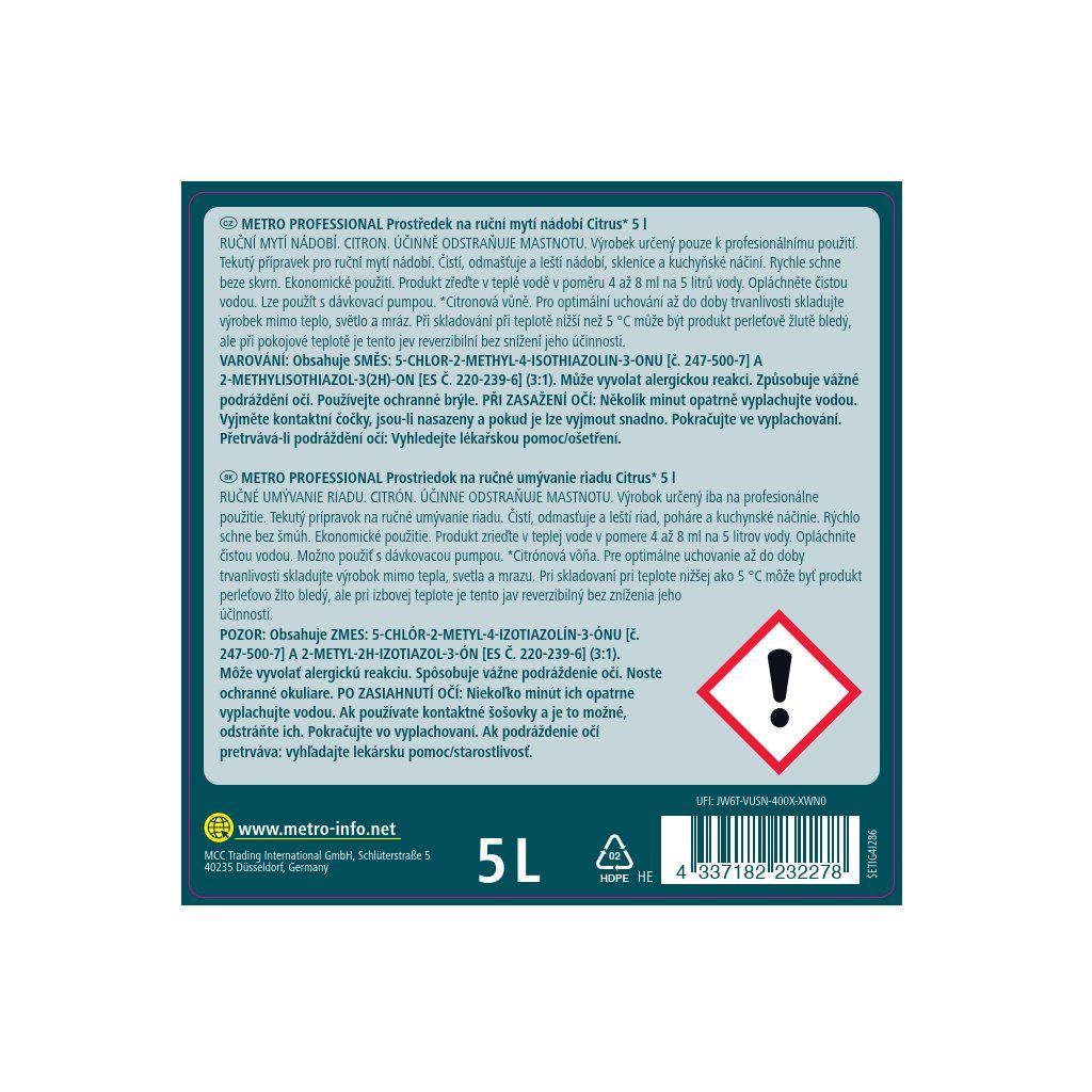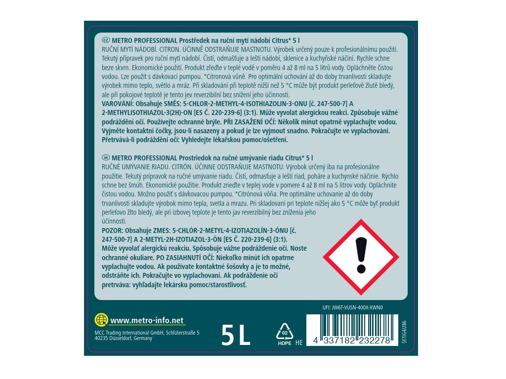 METRO PROFESSIONAL Gel na mytí nádobí Citrus 5 l