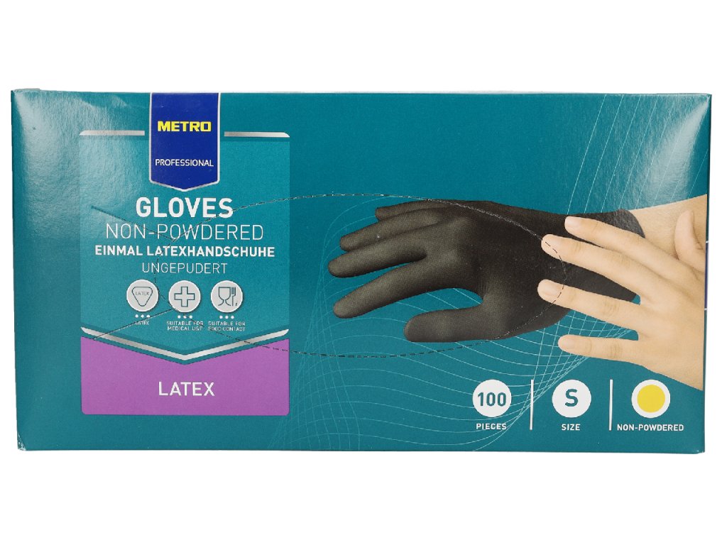 METRO PROFESSIONAL Rukavice nepudrované Latex černé vel. S 100 ks