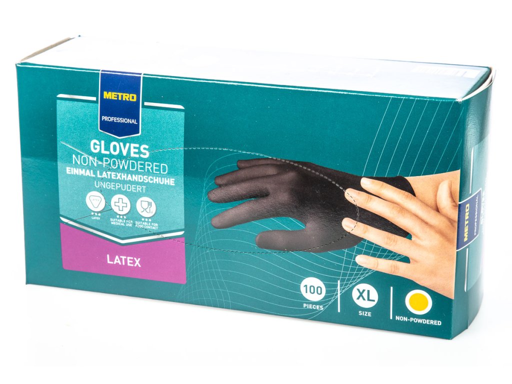 METRO PROFESSIONAL Rukavice nepudrované Latex černé vel. XL 100 ks