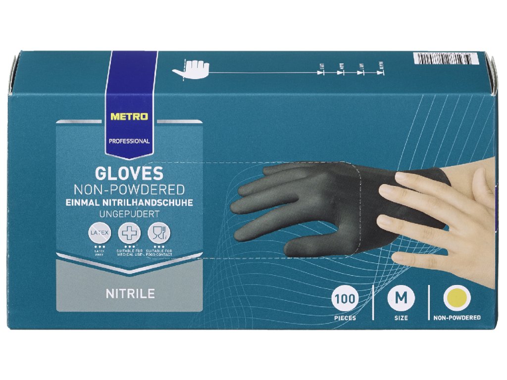 METRO PROFESSIONAL Rukavice nepudrované Nitril vel. M černé 100 ks