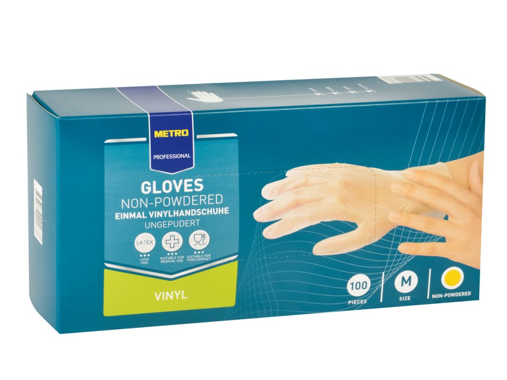 METRO PROFESSIONAL Rukavice transparentní vinylové nepudr. M 100 ks
