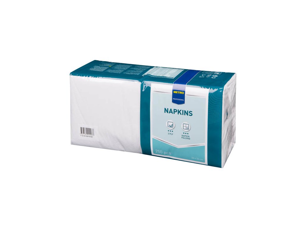 METRO PROFESSIONAL Ubrousky 3vrstvé 33 x 33 cm bílé 250 ks