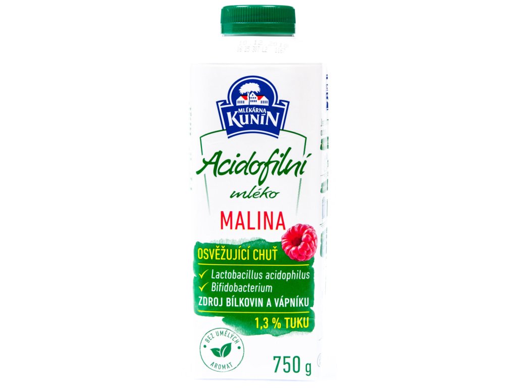 MLÉKÁRNA KUNÍN Mléko acidofilní malina chlaz. 750 ml za internetové ceny