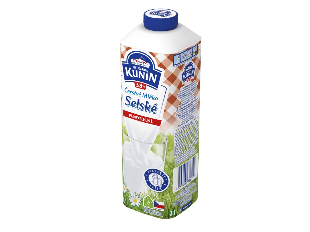MLÉKÁRNA KUNÍN Mléko selské 3,8 % čerstvé chlaz. 1 l