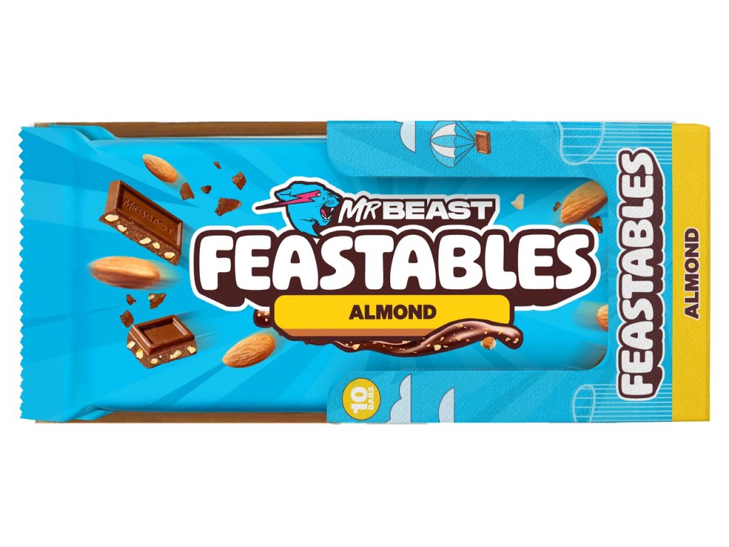- MrBeast mléčná čokoláda s kousky mandlí (12 %). Hmotnost: 60 g