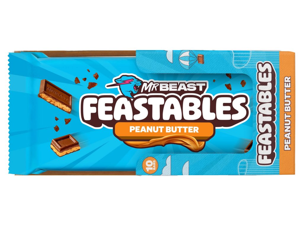 - MrBeast mléčná čokoláda s náplní (27 %) z arašídového másla. Hmotnost: 60 g