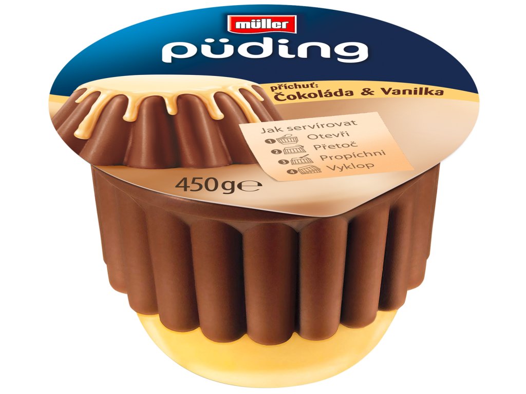- Pudink s čokoládovou příchutí a 23 % složky s vanilkovou příchutí.
