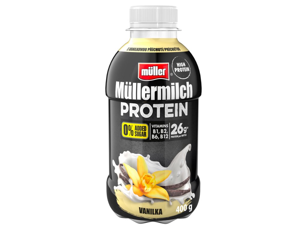 - Mléčný nápoj s vysokým obsahem bílkovin, s banánovou nebo čokoládovou příchutí.