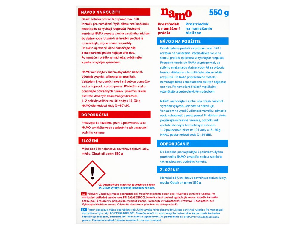 namo Prostředek k namáčení prádla 550 g