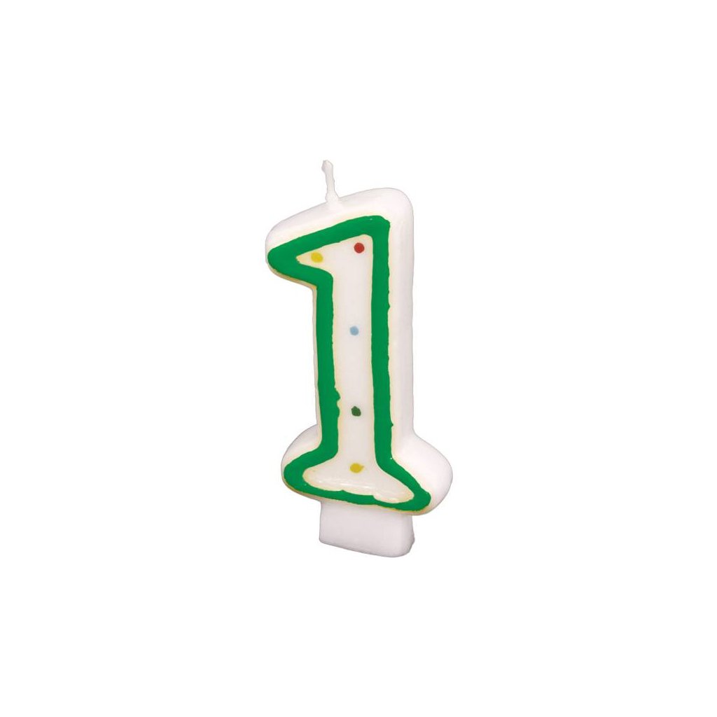 Narozeninová svíčka ve tvaru číslice 1 s puntíky. Výška 7,3 cm.Doplňkové parametry