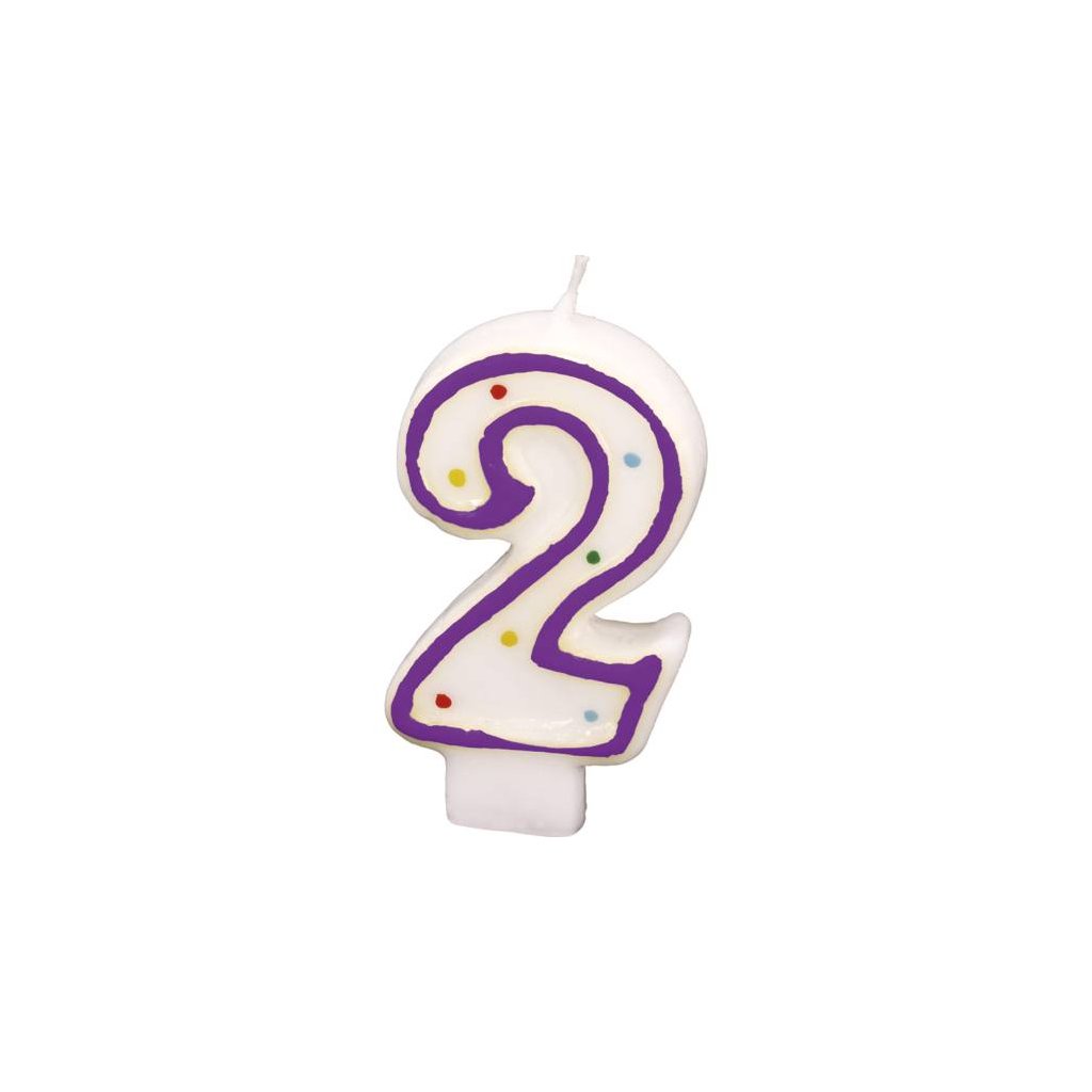 Narozeninová svíčka ve tvaru číslice 2 s puntíky. Výška 7,3 cm.Doplňkové parametry