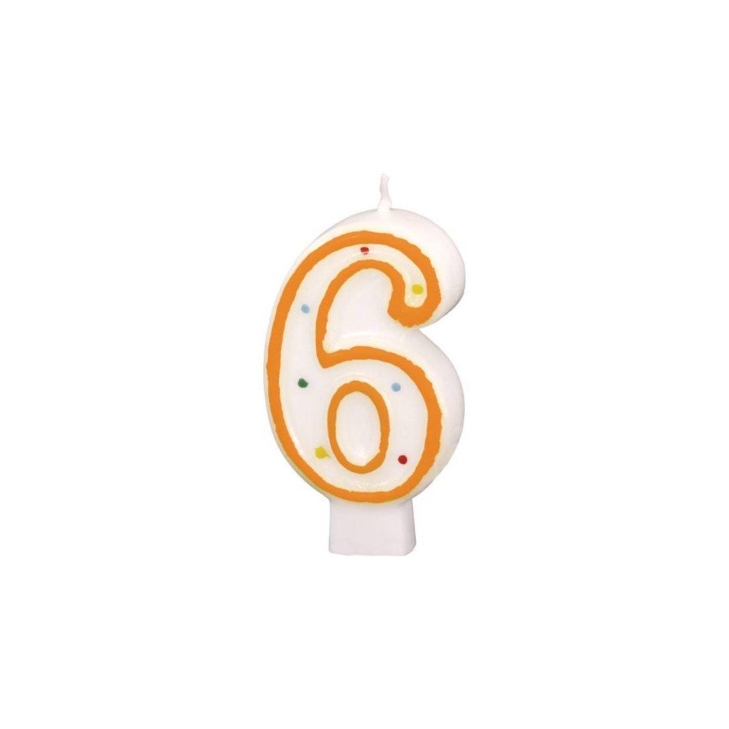 Narozeninová svíčka ve tvaru číslice 6 s puntíky. Výška 7,3 cm.Doplňkové parametry