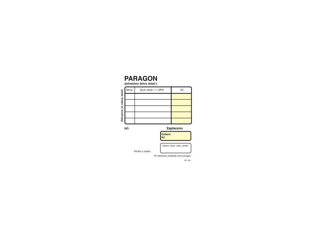 OPTYS Obchodní paragon NCR 7/9/5 100listů 5 ks