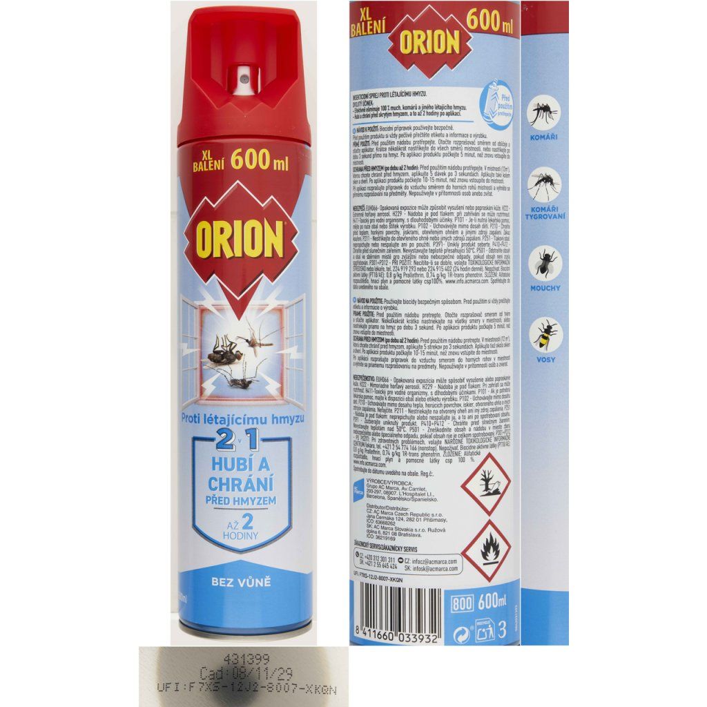 Orion Aerosol 2v1 bez vůně 600 ml