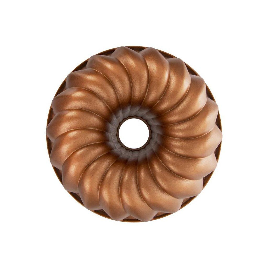 Forma na bábovku s nepřilnavým povrchem PFLUON pro pečení piškotových, třených i kynutých těst. Materiál: hliník s povrchovou úpravou v barvě mědi – uvnitř dvojitý nepřilnavý povrch, vně nástřik. Je odolná teplotám do +200 °C. Bábovku klasicky vymažte a vysypte moukou a skvěle ji pak z formy vyklopíte. Vhodná do elektrické, plynové i horkovzdušné trouby. Snadno se umývá, nelze ji umývat v myčce na nádobí. Rozměry: pr. 24 cm, v. 10 cm.Doplňkové parametry