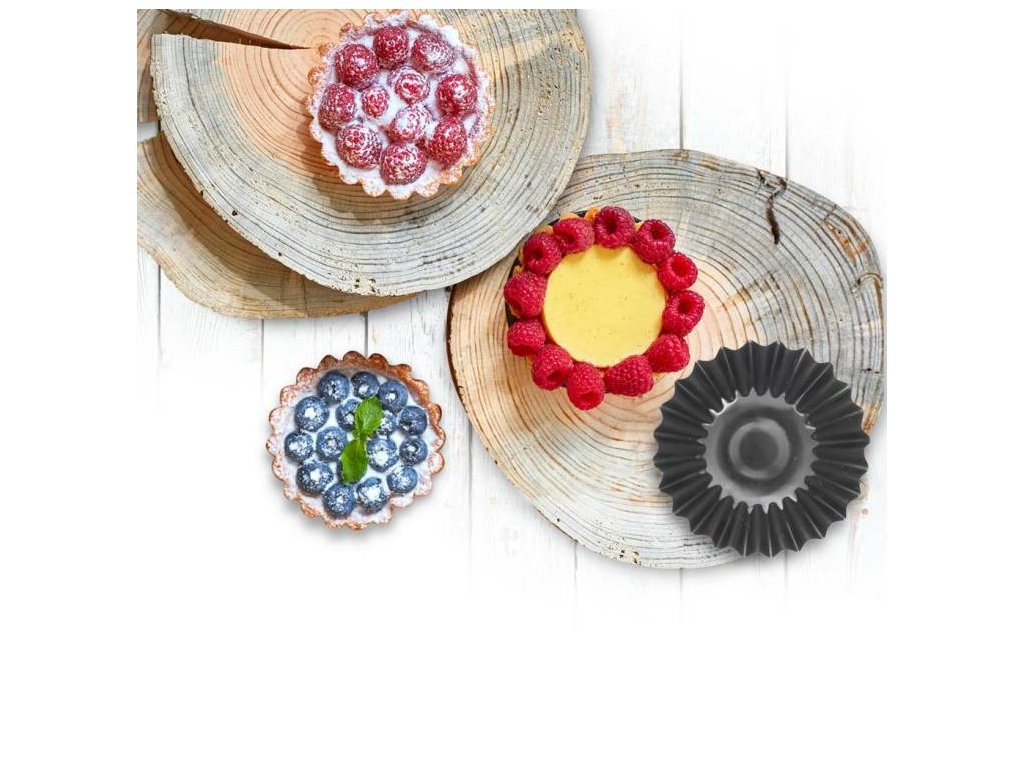 Koláčová forma - sada 6 ks. Vytvoříte košíčky z různých druhů těsta a připravíte z nich slané i sladké zákusky.Materiál: kov s nepřilnavým povrchem Průměr: 7 cm Výška: 2 cmDoplňkové parametry