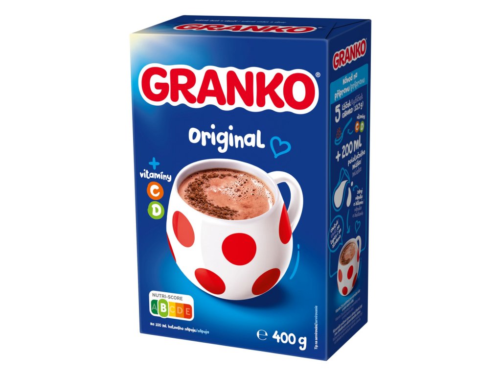 - Návod na přípravu: Chutná za tepla i za studena. 3 lžičky (8 g) GRANKO + 200 ml polotučného mléka.