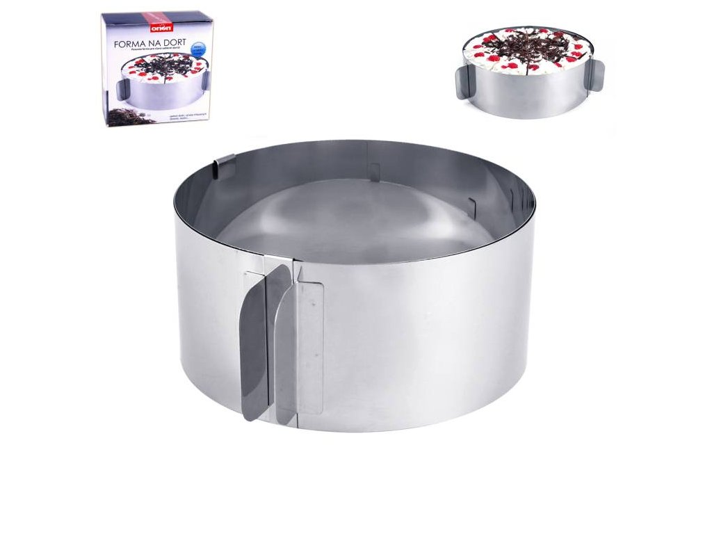 Nastavitelný ráfek na pečení dortů různých velikostí a tvarů. Stačí Vám pouze jediná forma a můžete péct několikapatrové dorty.Průměr: od 15,5 do 29,5 cmVýška: 7,5 cmDoplňkové parametry