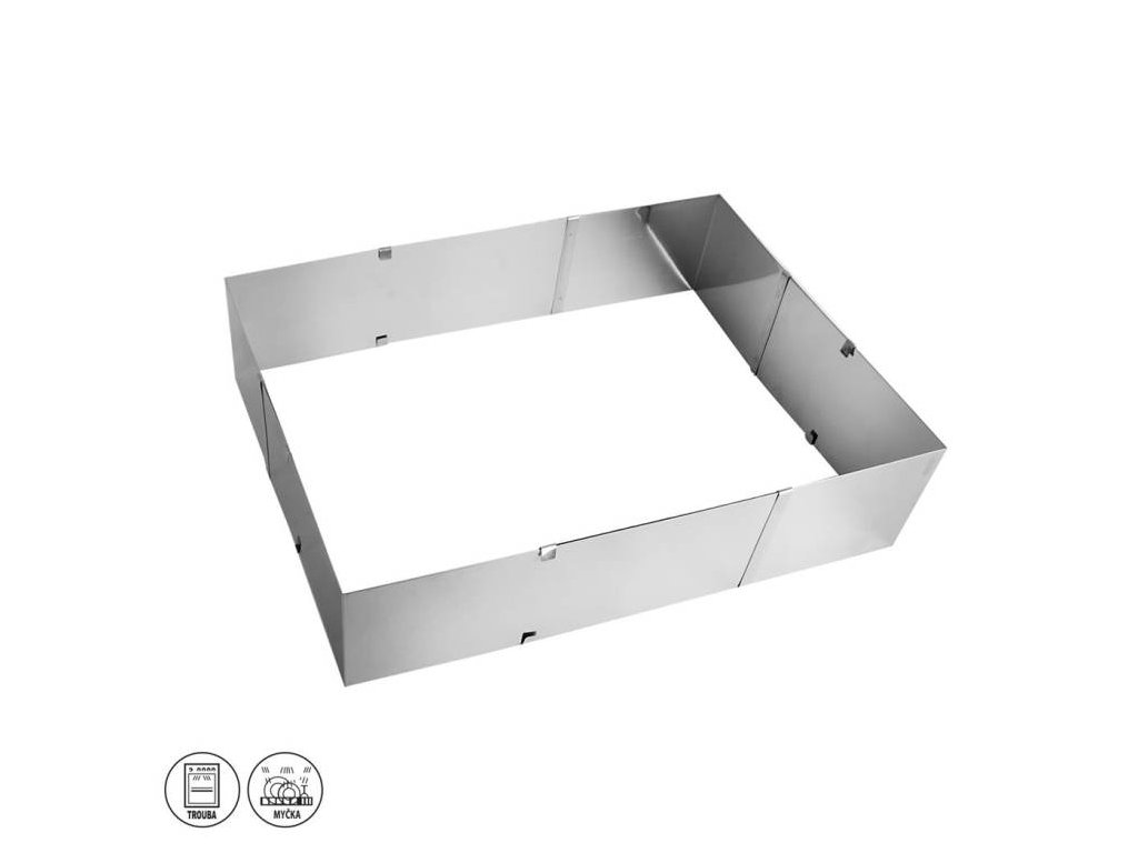 Posuvná forma na pečení dortů různých velikostí a tvarů. Stačí Vám pouze jediná forma a můžete péct několikapatrové dorty.Výška: 6 cmŠířka: 20 - 38 cm; délka: 24 - 46 cmDoplňkové parametry