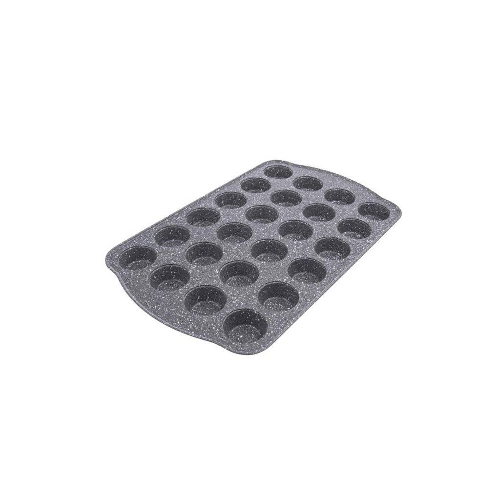 Plech na mini muffiny/košíčky s kvalitním nepřilnavým povrchem, který brání připečení, a to i při použití minimálního množství tuku. Upečené dobroty snadno z plechu vyjmete. Můžete použít také papírové nebo silikonové košíčky. Doporučujeme formu vymazat nebo vystříkat sprejem na pečení.