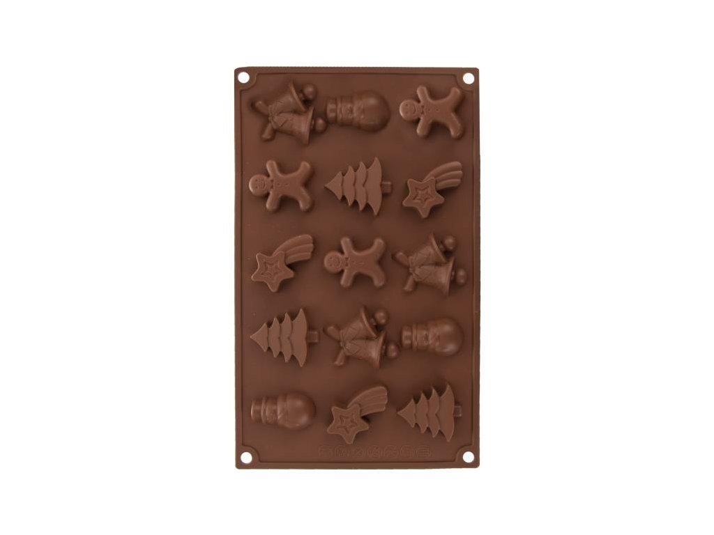 Silikonová forma Vám vytvoří dobroty z čokolády ve vánočních tvarech – stromeček, kometa, zvonky, panáček, sněhulák. Materiál: silikon - odolný vůči teplotám -40 °C až +220 °C Rozměry: 29 x 17 x 1,5 cmDoplňkové parametry