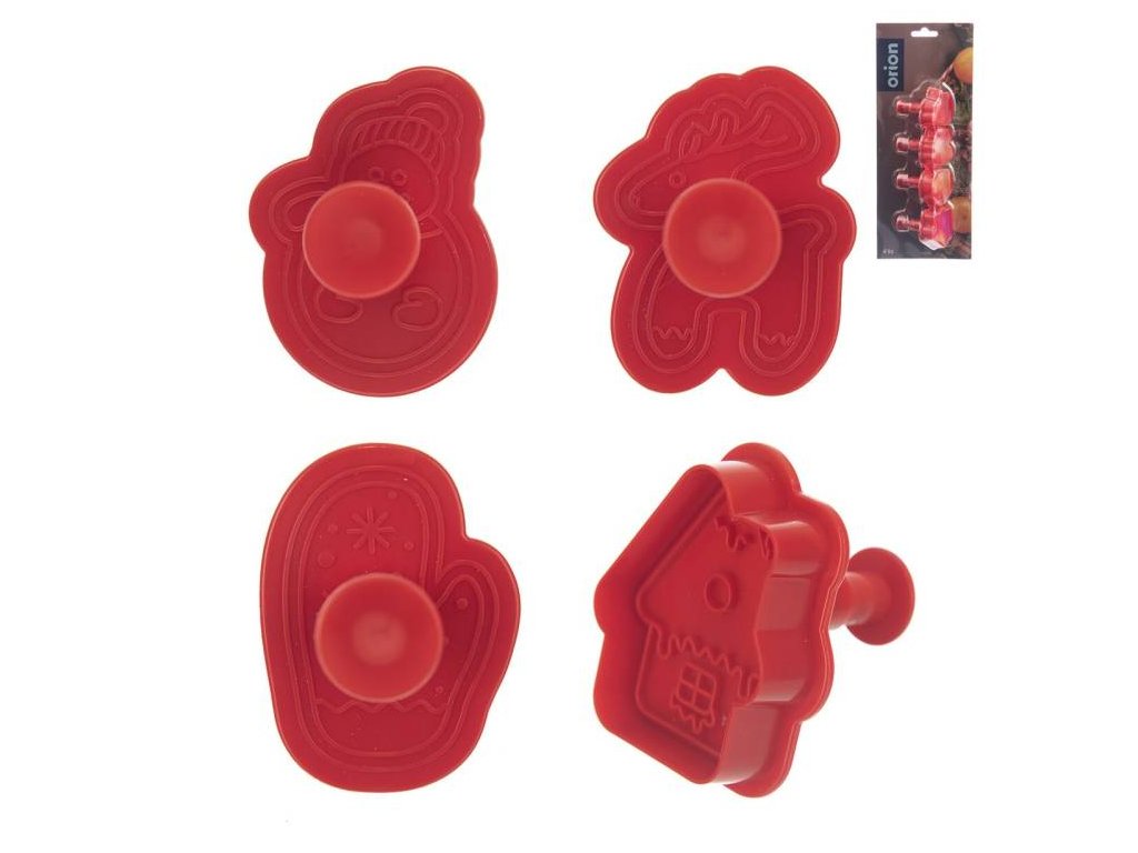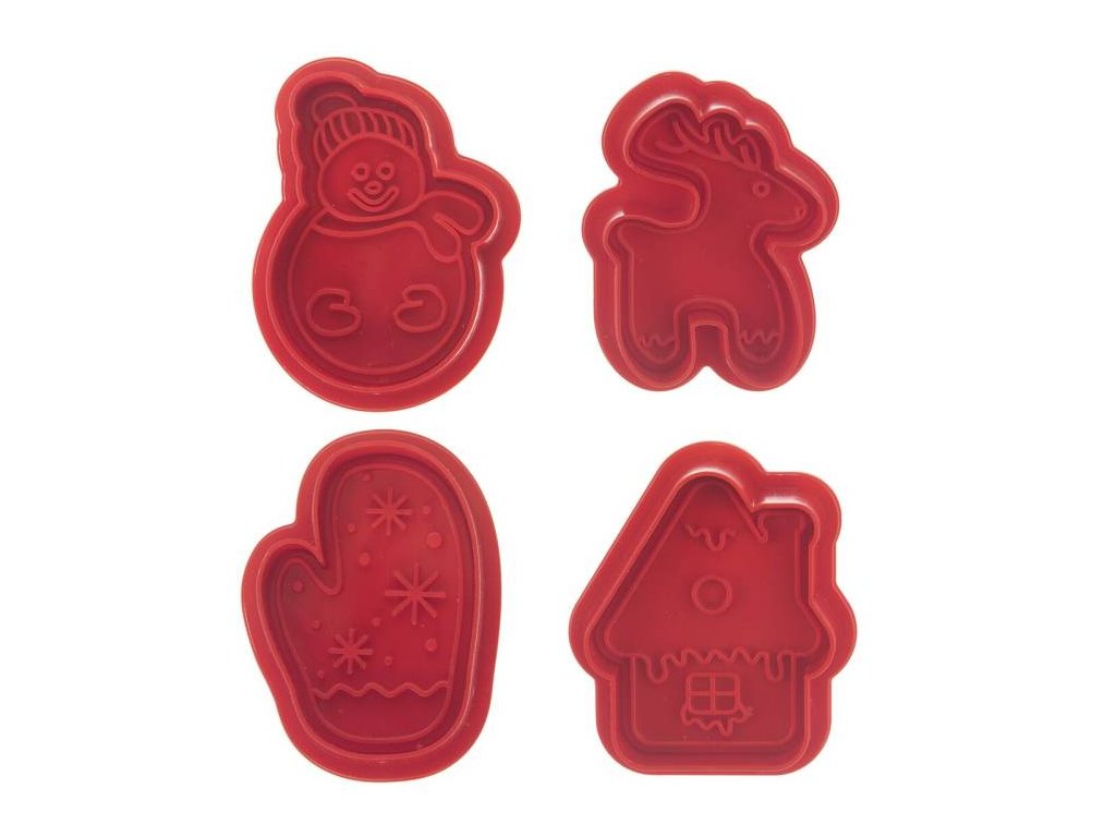 Vykrajovačka s pístem skvěle vytvoří domácí perníčky nebo sušenky. Nejdříve vykrojíte klasicky obrys, pomocí pístu pak obtisknete plastický vzor. Sada 4 vánočních tvarů – sob, rukavice, domeček, sněhulák. Vhodné nejen na sušenky a perníčky, ale také na marcipánové ozdoby nebo modelovací hmotu. Materiál: plast PP, kov-ocel Rozměry: 5 cm