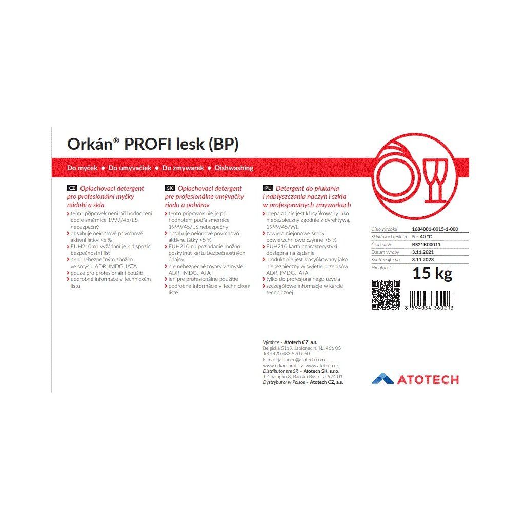Orkán Profi lesk neutrální oplachový prostředek do průmyslové myčky 15 kg