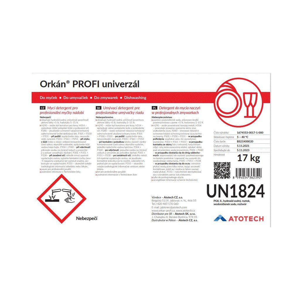 Orkán Profi univerzál mycí prostředek do průmyslové myčky 17 kg