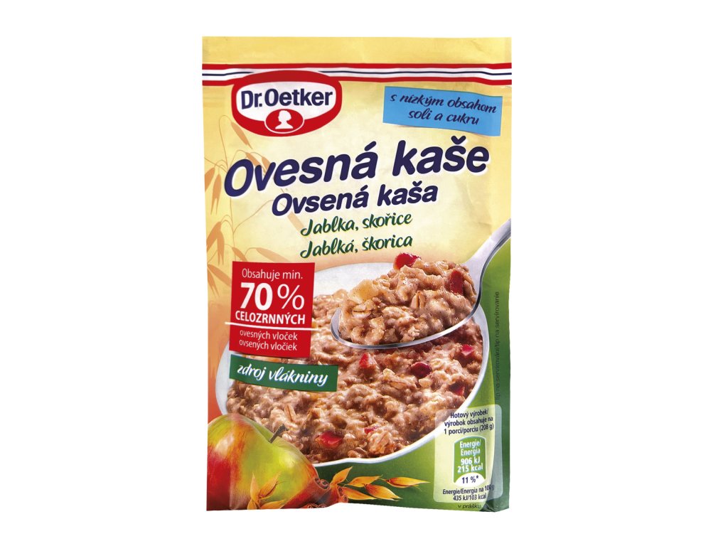 NUTRIČNÍ HODNOTY produktu - Dr. Oetker Ovesná kaše Jablko, skořice 58 g / 100g výrobku