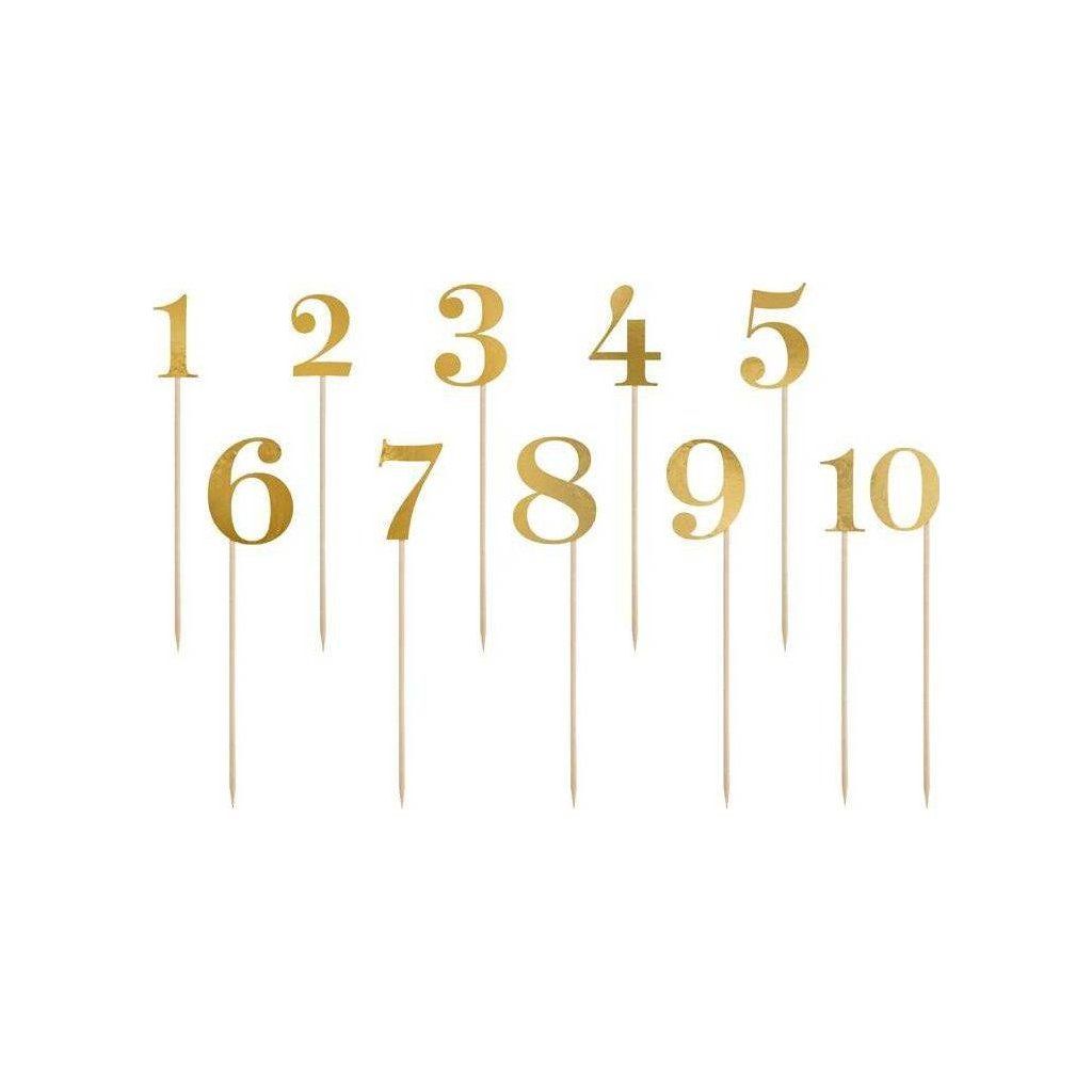 Cukrářské potřeby a suroviny pro sladké pečení.Produkt pro domácí cukráře: PartyDeco zapichovací dekorace na dort zlatá Číslice (11 ks) KPZ2-019M dortis ,