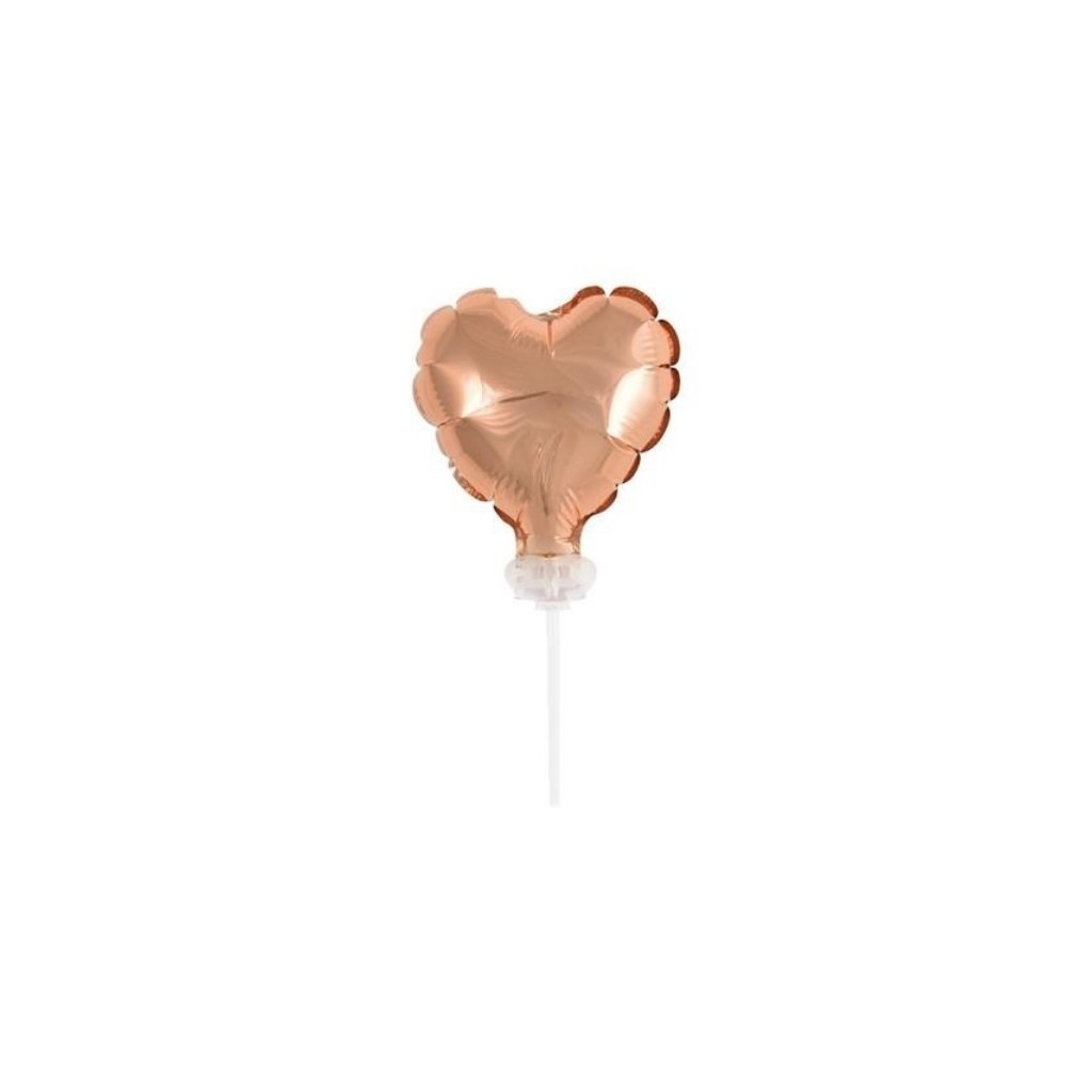 Rosegold nafukovací srdíčko na tyčce o velikosti 8 cm. Ozdoba na dort a další dezerty.Velikost: 8 cmBarva: RosegoldNafukování: VzduchDoplňkové parametry